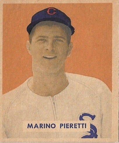 1 Pieretti’s birth year was often misstated as 1921, such as on his Sporting News Player Contract Card. The error may have originated from confusion with the year he immigrated to the US. Pieretti’s birth and immigration information gathered from: https://www.ancestry.com/search/?name=marino_pieretti&birth=1920&name_x=ps.
