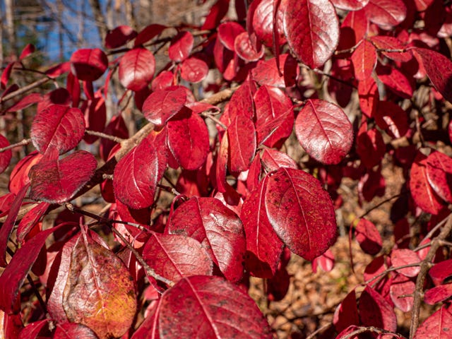 Fall brings the most colorful display, as the leaves turn a variety of splashy colors. The leaves can exhibit a wide palette of colors, from pink to orange, deep red, and even dark purple. Plus, the glossy leaves help to accentuate the colors.