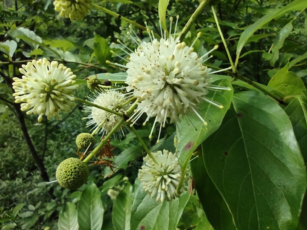 Are you looking for a native shrub with an unmistakable flower, a feast for pollinators, and that is adaptable to a variety of soil conditions? The Buttonbush (Cephalanthus occidentalis) could be the plant for you.